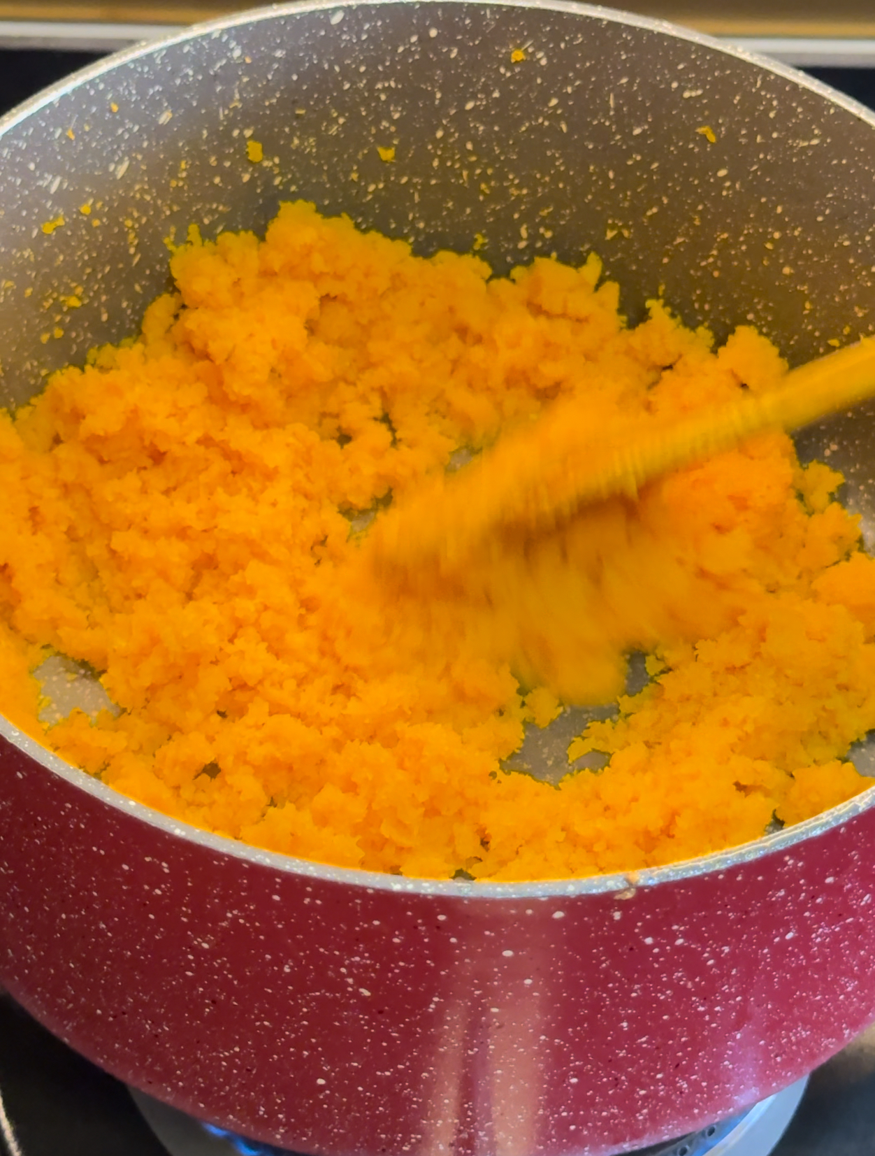 Cook the Carrots: In the same pan, add another 1 tbsp of ghee and fry the ground carrots for about 3 minutes on low flame.