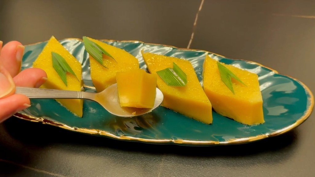 Turn the Vattalappam upside down onto a serving plate. Cut it into your desired shape. You can serve it cold from the fridge or heat it in the oven before serving.